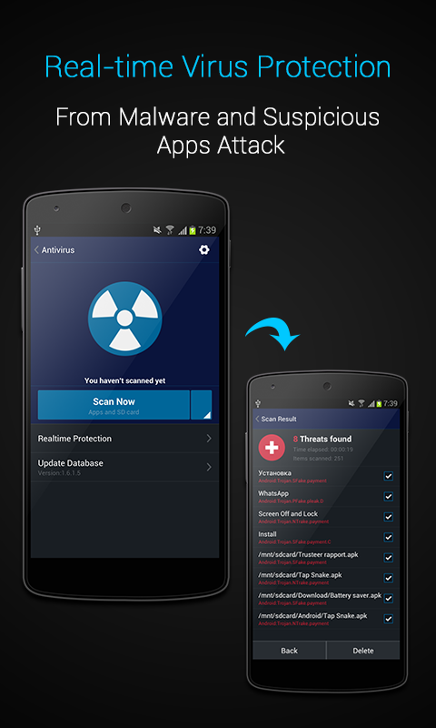 Virus Protection အေနနဲ႕ ဖုန္းအတြင္းကို မလိုလားအပ္တဲ့ Virus , Malware , စတာေတြကိုလည္း ရွာေဖြျပီးရွင္းလင္းေပးႏိုင္ပါတယ္။